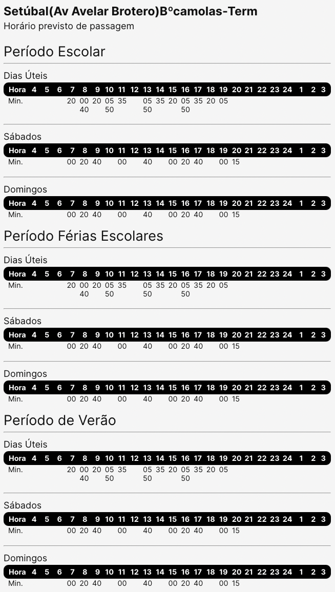Horário da carreira - 4421 Setúbal (Bairro Camolas) - Setúbal (Casal Figueiras) no concelho - setubal
